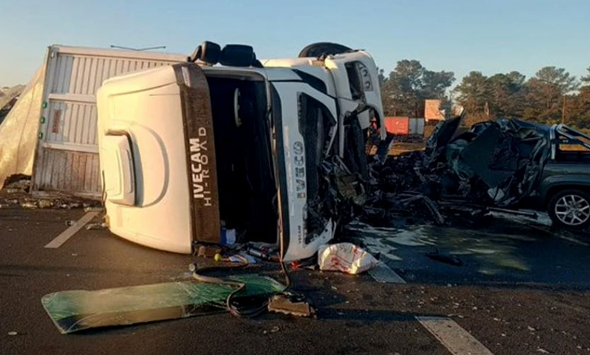 El estremecedor siniestro tuvo lugar este jueves por la mañana en la RN 9, altura Campana en km 72, cuando un camión que transportaba botellas vacías se cruzó a la mano contraria y chocó de frente contra una pickup Amarok.
