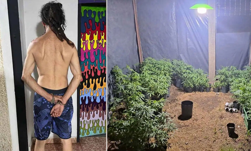En el domicilio allanado, la Policía incautó una vaina servida calibre 22, cinco municiones calibre 22, 35 municiones calibre 38, seis celulares y 4,800 kilos de hojas de cannabis sativa y plantines de la misma especie.