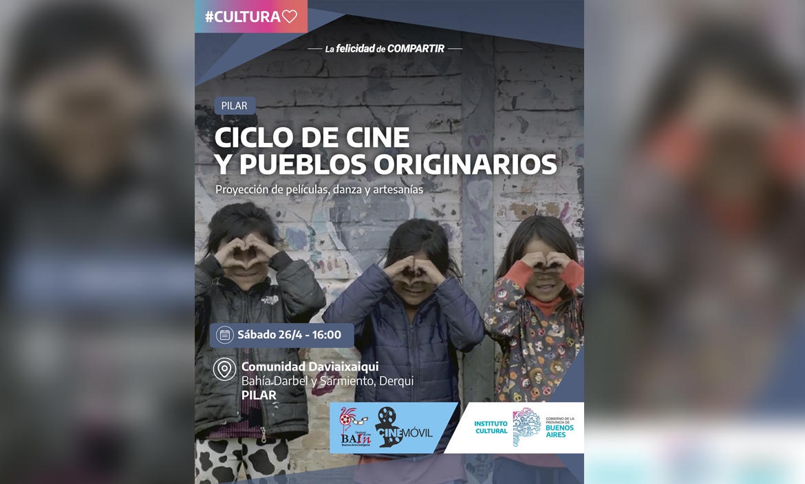 La Dirección de Diversidad y Prácticas Identitarias de la Dirección Provincial de Coordinación de Políticas Culturales, junto a la Dirección de Políticas Audiovisuales, dependientes del Instituto Cultural de la provincia de Buenos Aires, y el Festival de Cine Indígena de Buenos Aires (BAIn), invita este sábado 26 de abril, a presenciar y ser partícipes del Ciclo de Cine y Pueblos Originarios, celebrado en el marco de la semana de los Pueblos Originarios.