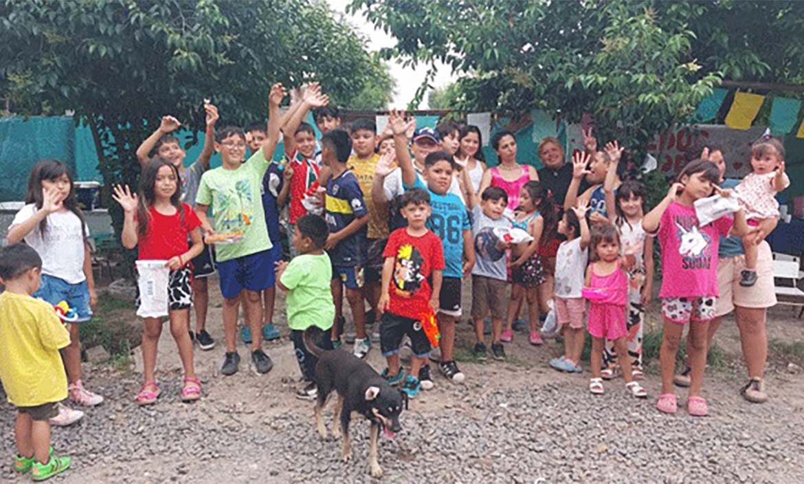 El jueves siguiente, el 28 de diciembre, los voluntarios de la Red de Costureras Solidarias y de la Asociación Solidaria 8 de Diciembre se acercaron al barrio Los Laureles de Presidente Derqui para llevar alegría al comedor "Todos somos uno".